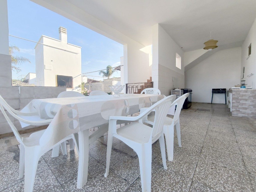 All'esterno, la spaziosa veranda con tavoli e sedie è il luogo perfetto per rilassarsi e godersi i pasti all'aperto o semplicemente prendere il sole. Qui c'è anche un lavabo con annessa lavatrice e una doccia esterna. Il parcheggio privato è un comodo bonus per chi arriva in auto, offrendo sicurezza e tranquillità durante il soggiorno,