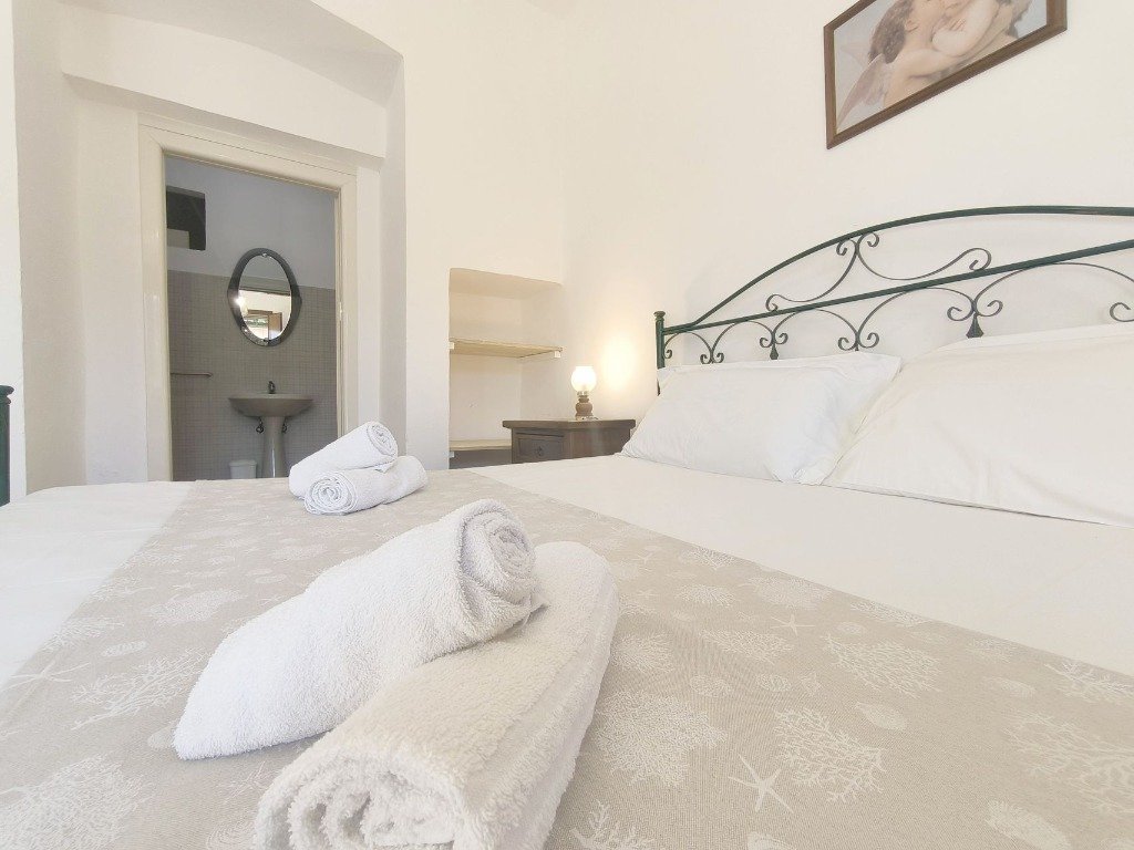 Situato al piano terra, a questo appartamento si accede da un corridoio posto su strada e vi accoglie con il suo ampio cortile interno arredato con tavolo e sedie, dove potrai goderti piacevoli pranzi o cene all'aperto, o semplicemente rilassarti dopo una giornata di mare.